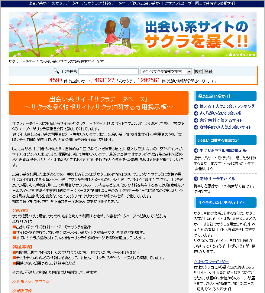 「出会い系サイトのサクラを暴く!」(http://sakuradb.com/)