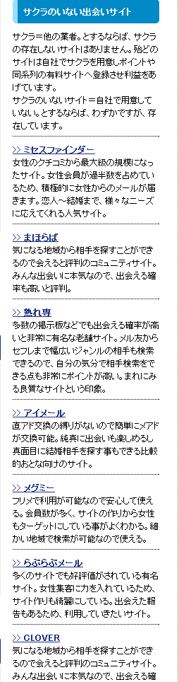 少なからずこの「出会い系サイトのサクラを暴く!」よりは100倍まともだと思いますよ。