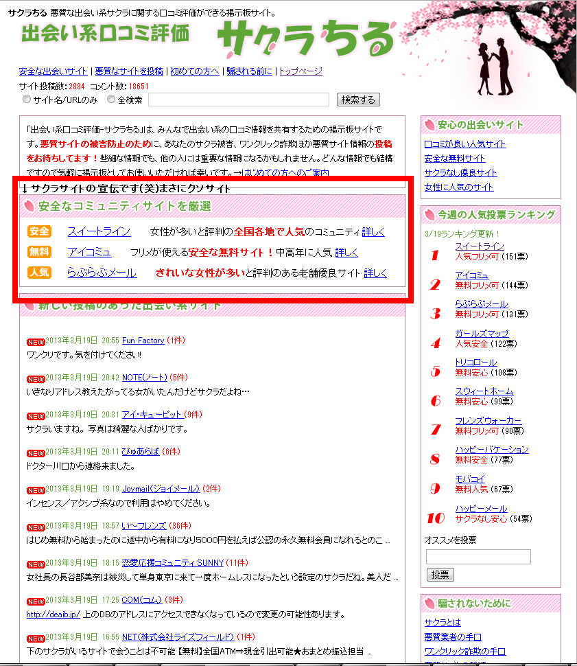 人気投票ランキングなんて実際には行っていないランキング(笑)にもサクラサイトが紹介されてますね(笑)