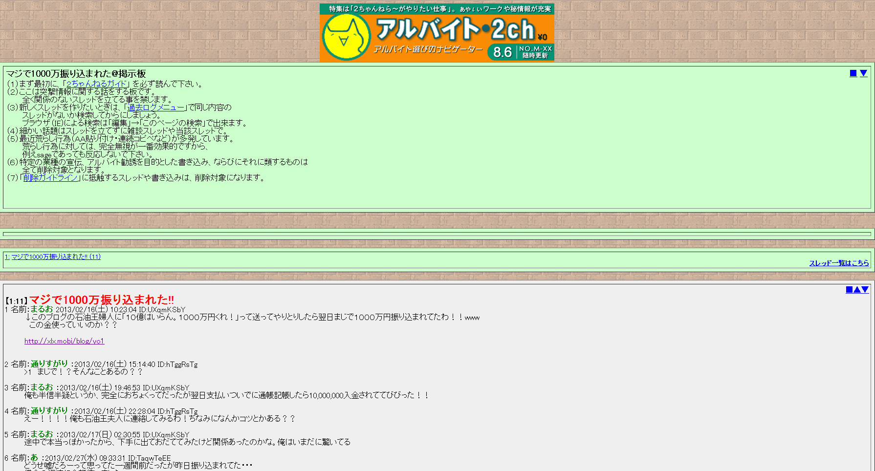 1 名前:まるお 2013/02/16(土) 10:23:04 ID:UXqmKSbYなんてアホな釣り投稿が(笑)