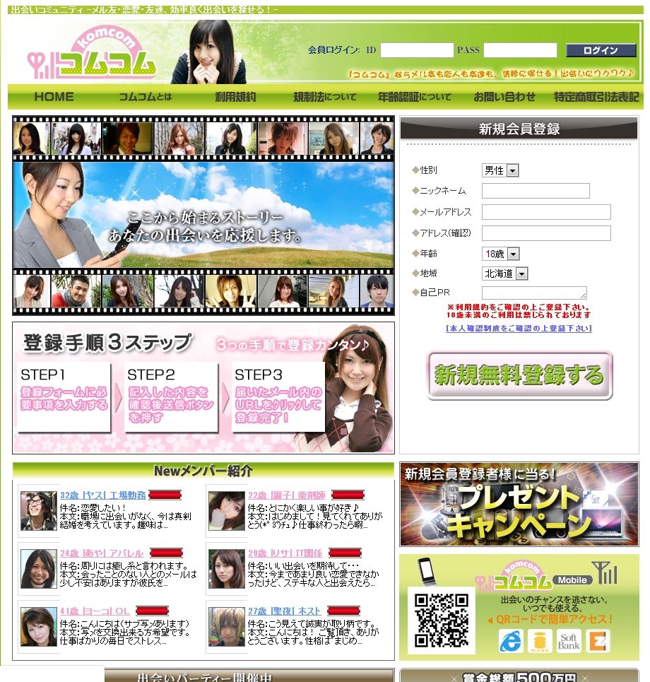 今回の餌食はフロンティア21系列のサクラサイト【コムコム】http://komcom.jp/です