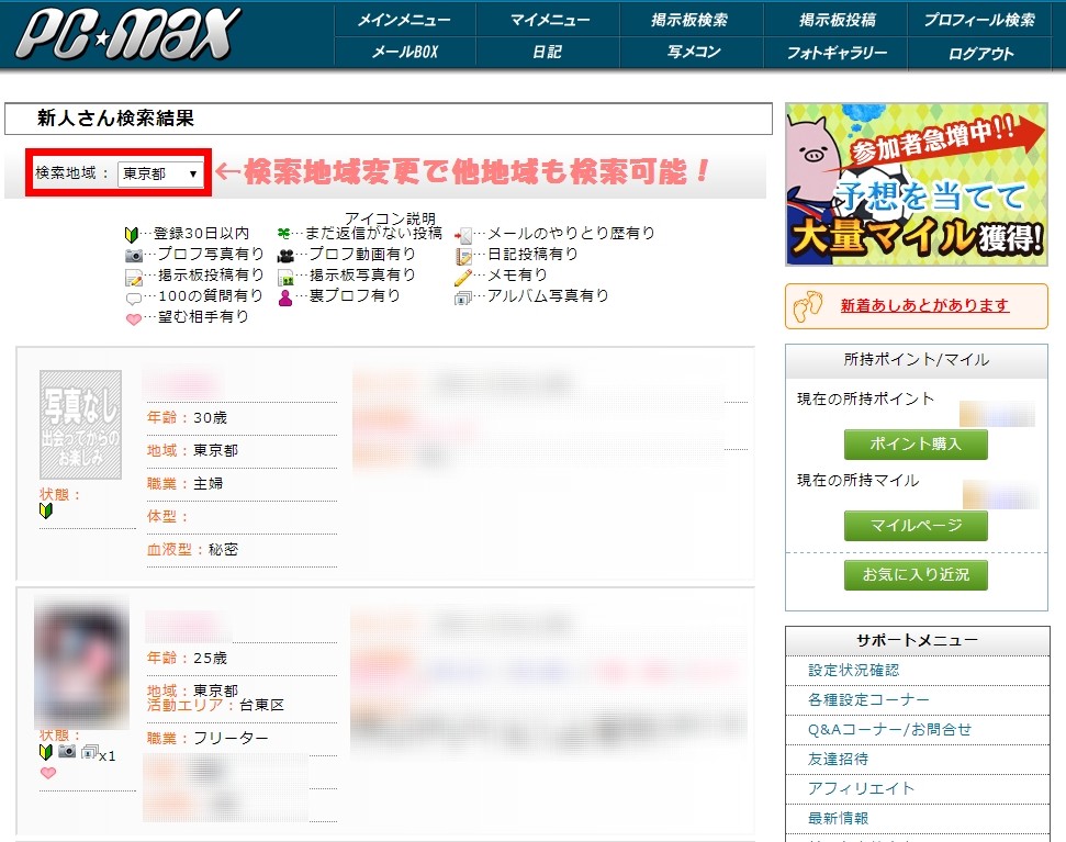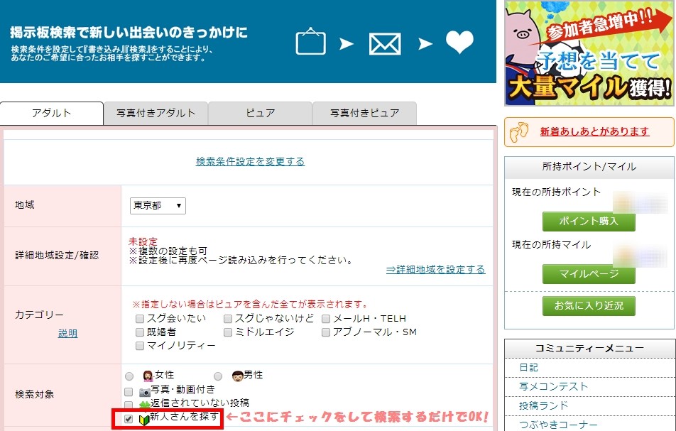 新人プロフール検索、掲示板書き込みと併用して使ってみてください!